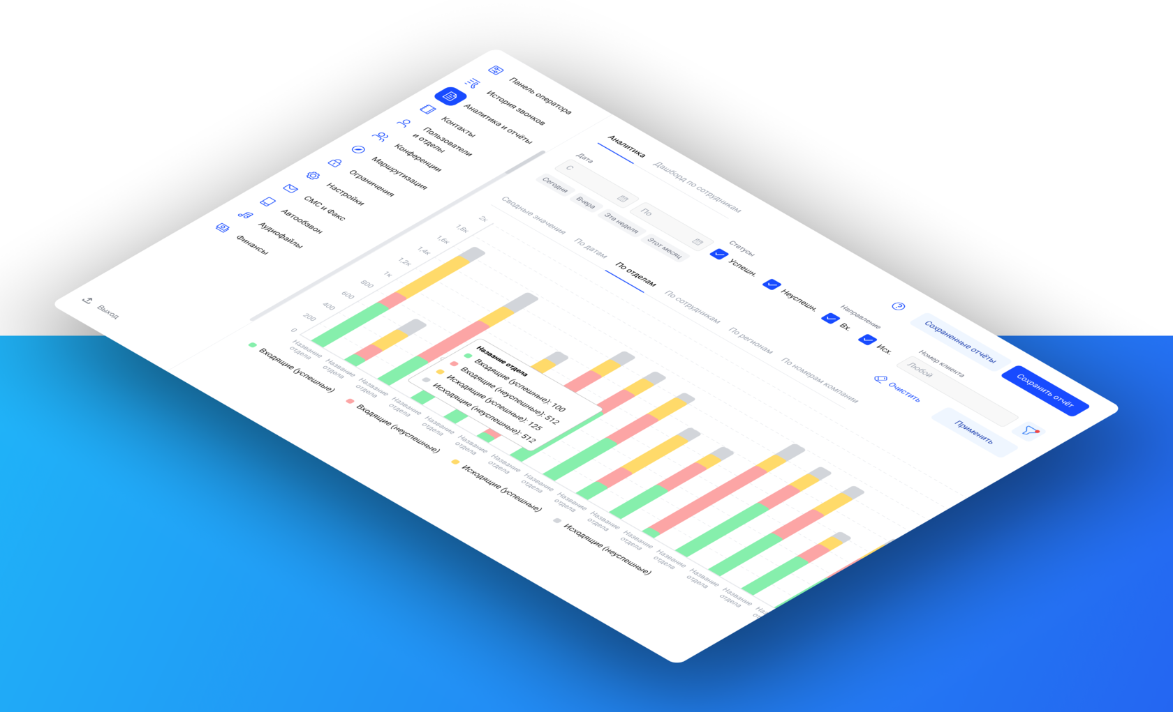 «Аналитика и отчеты» представлен обширный инструментарий для обработки разнообразных данных, ежедневно проходящих через систему виртуальной АТС. В числе доступных функций: